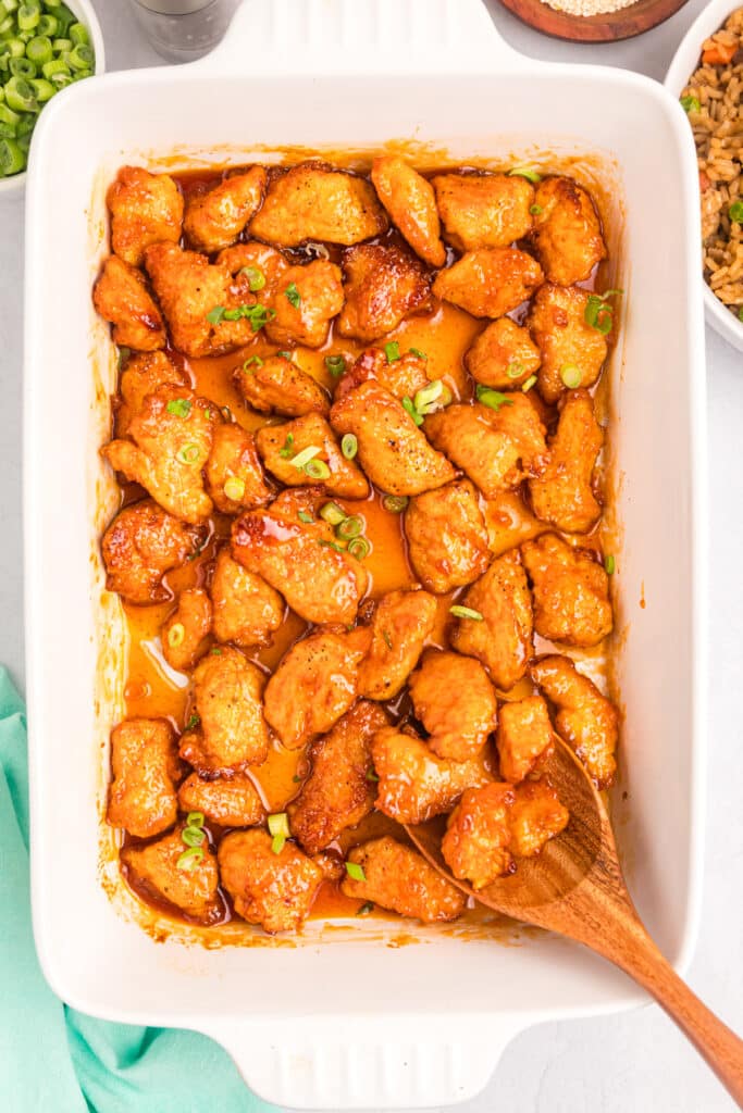 Baked sweet and sour chicken freezes well, so I say double the batch! Once completely cooled, freeze leftovers in a freezer-safe container for up to 2 months. Thaw in the fridge overnight.