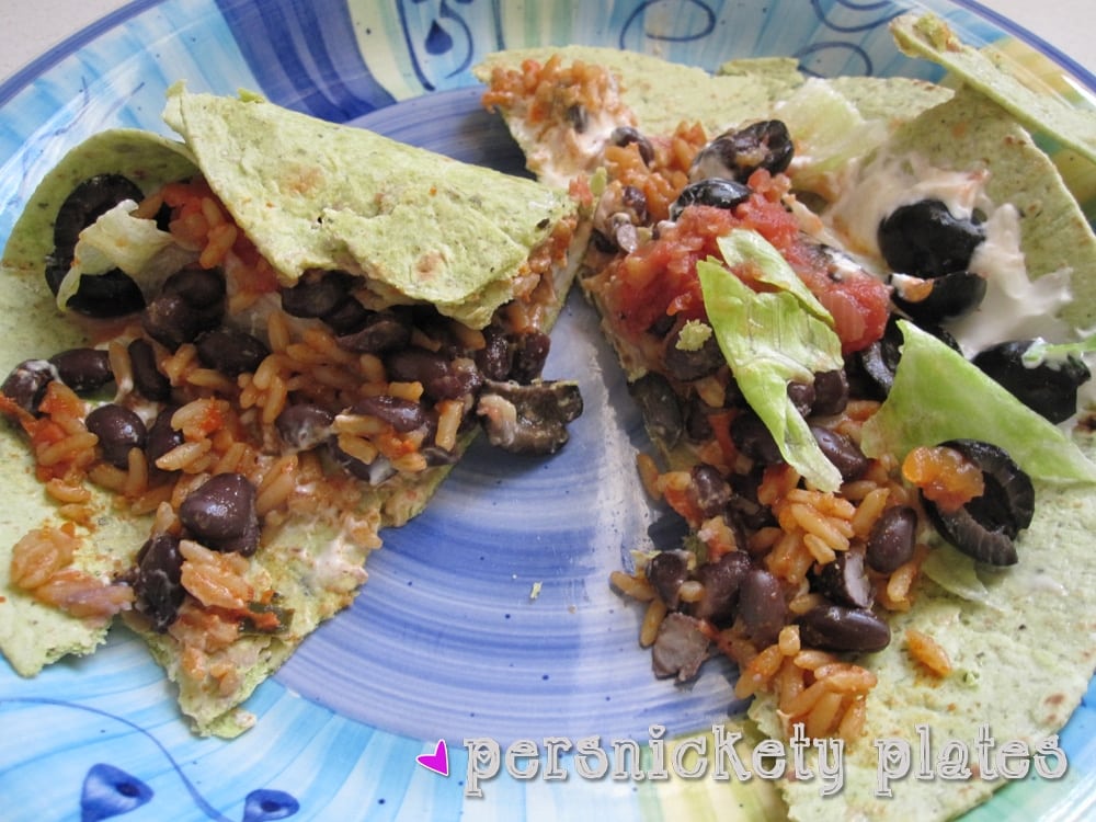 The combination of beans and rice is a complete protein, so just eating one leaves my hungry family completely satisfied. They’re perfect for Meatless Monday.